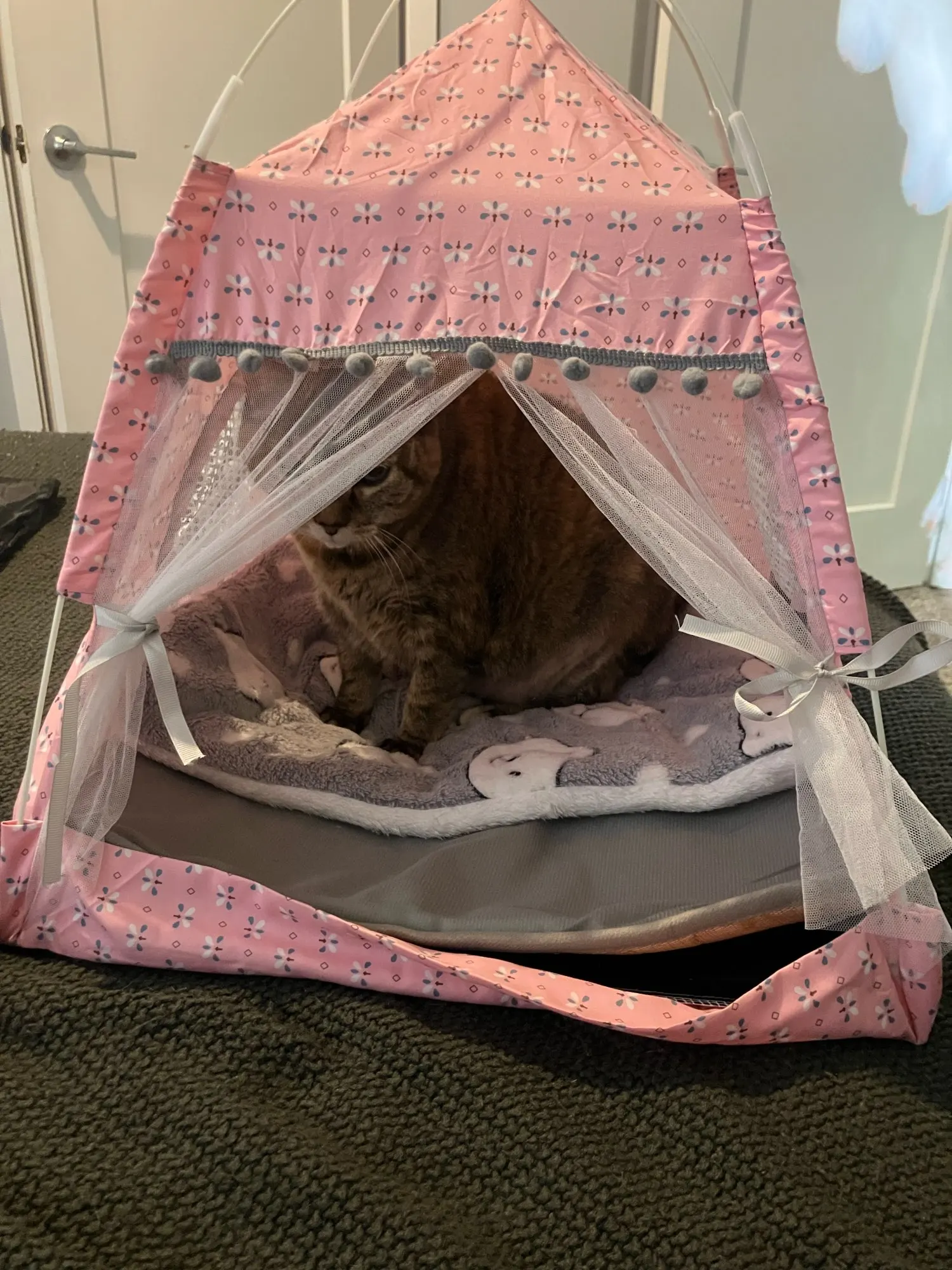 Miss gabby, the cat, loves her tent! I ordered the extra large and it’s perfect size for my cat! It’s easy to assemble and arrived quickly. My cat and i are very happy with this purchase!